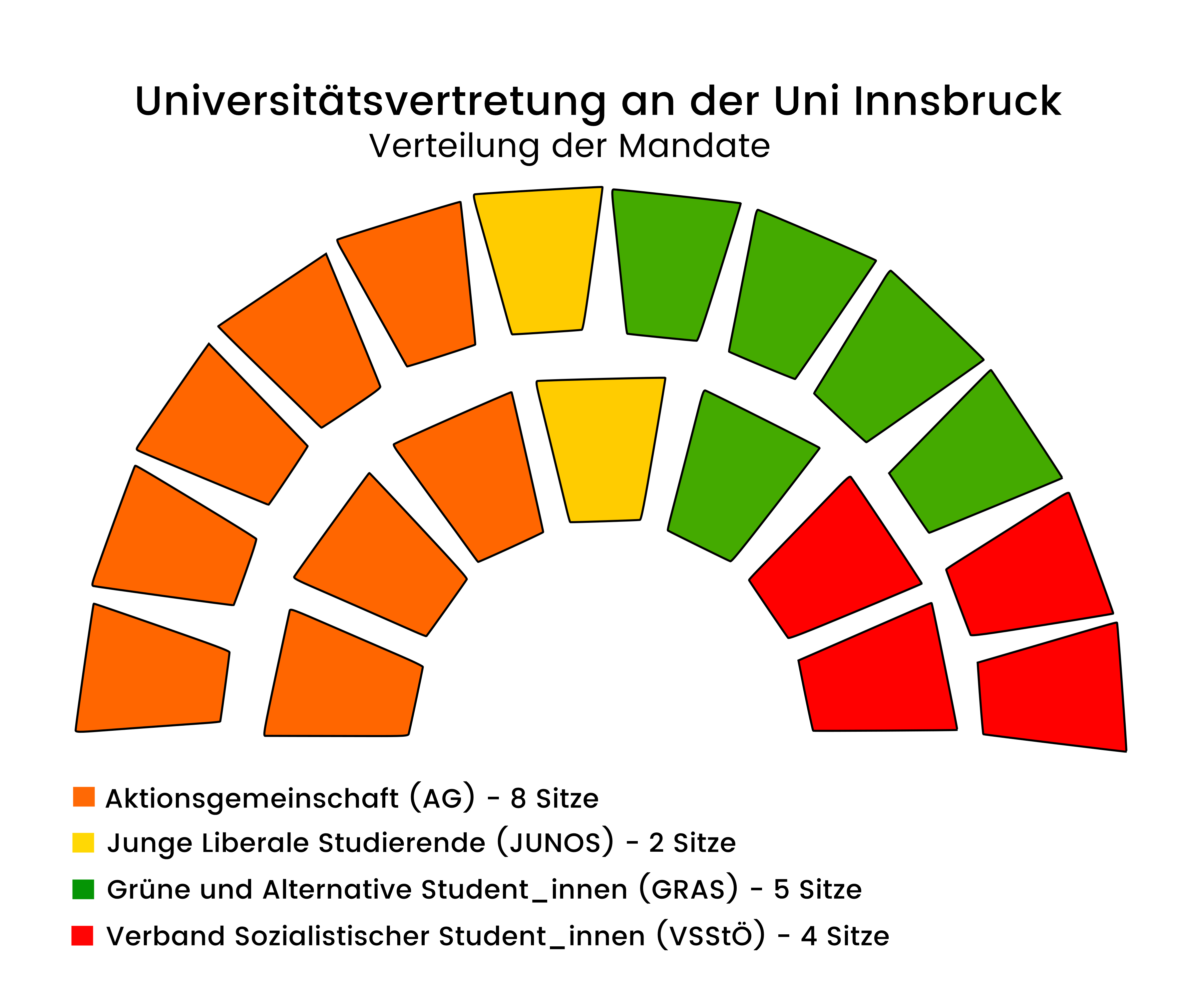 Die Verteilung der 19 Sitze in der Universitätsvertretung
