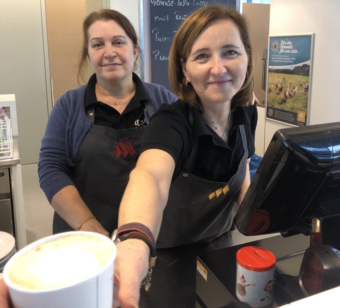 Sitzend auf meinem Lieblingshochtisch am Fenster schaue ich von dem letzten Kaffeeschlücklein hoch, der sich noch in der Tasse befindet. Denn ich höre es in der Küche (wortgetreu) klirren und scheppern. Es signalisiert mir, dass sie bald schließen. Wortwörtlich zugemacht werden jedoch nur die Türen; Studis bleiben draußen, drinnen geht es heiß her: Das Geschirr wird gewaschen, die Tische werden geputzt, die Theke gereinigt und die Kaffeemaschine für den nächsten Tag poliert.