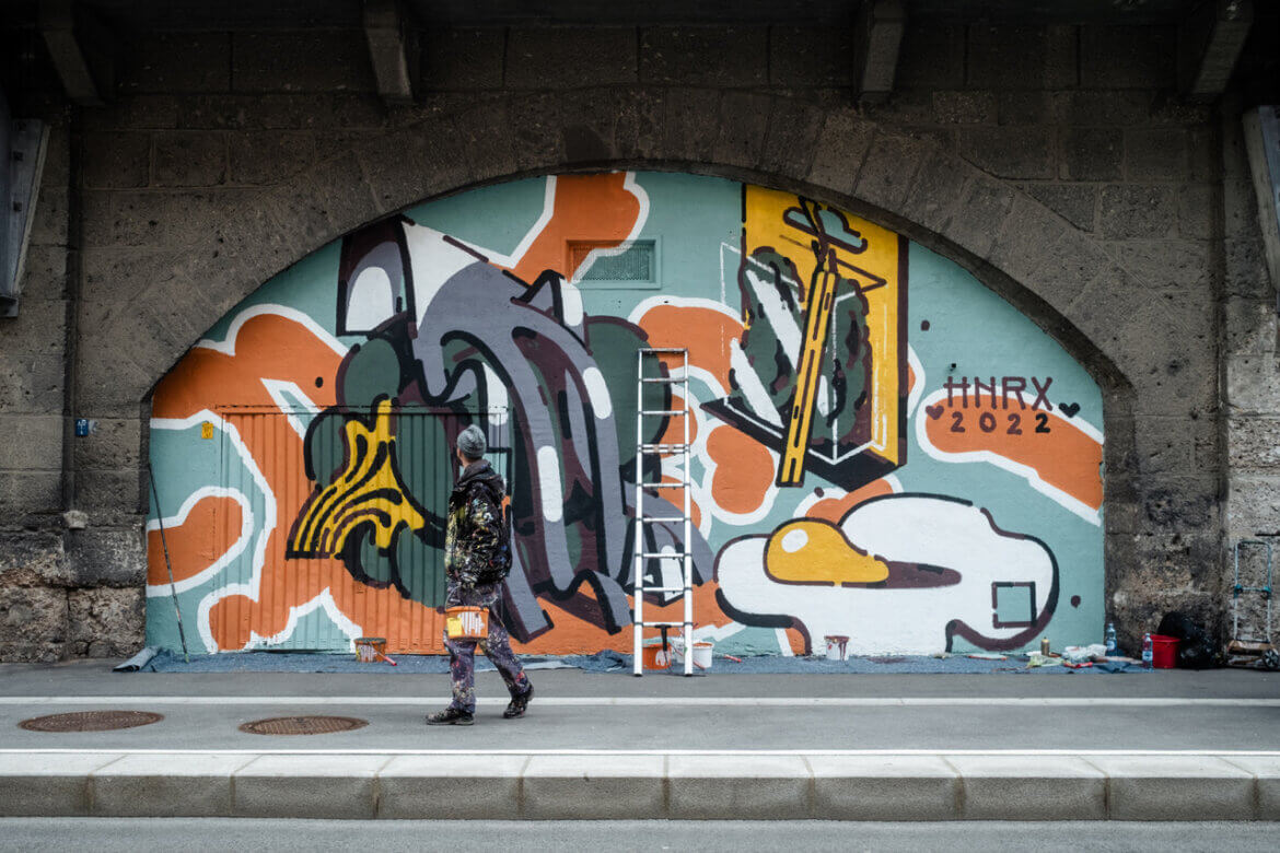 HNRX aus Inzing bezeichnet sich selbst nicht als typischen Graffitikünstler, sondern eher als Straßenkünstler. Seine Kunst ist surrealistisch und entsteht meist spontan aus Emotionen heraus. Bei den dargestellten Objekten handelt es sich vor allen Dingen um Alltagsgegenstände. Sie sind mal seltsam deformiert, mal gestochen scharf. Immer stehen sie in inhaltlichem Kontrast zueinander. Mit seiner Kunst möchte HNRX den Betrachter dazu anregen, die alltäglichen Dinge wieder mehr zu schätzen.